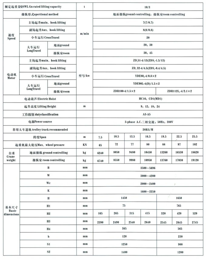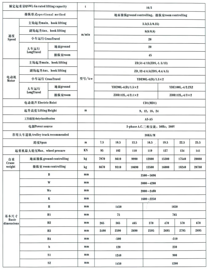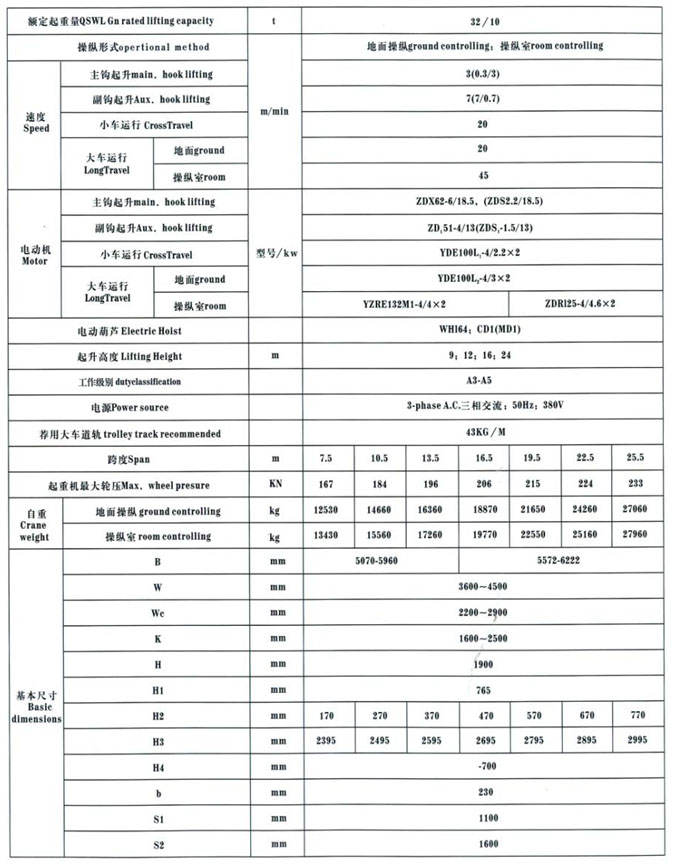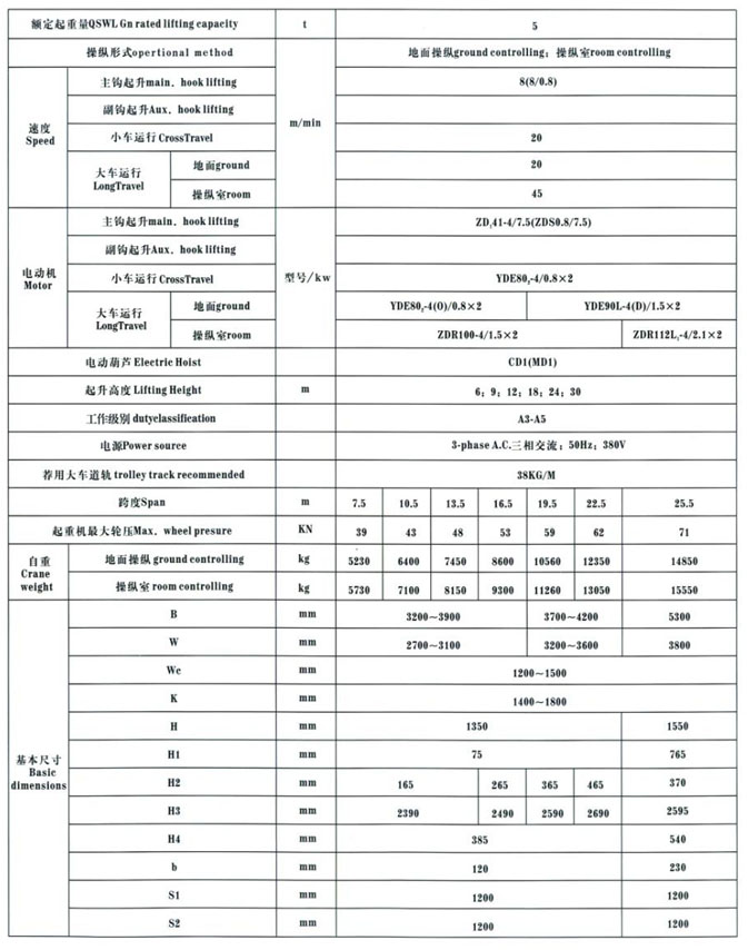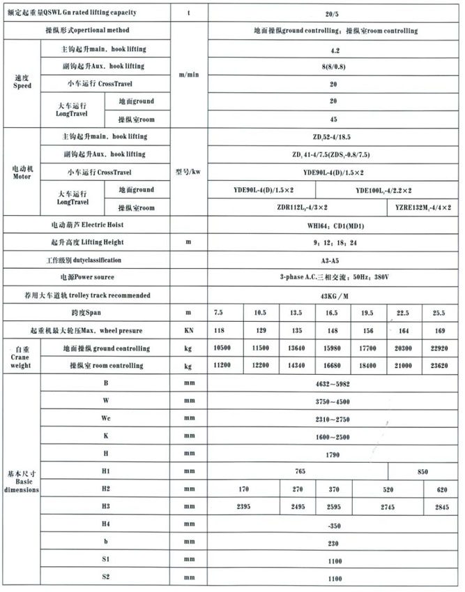 QD型5~100/20t吊鉤橋式起重機